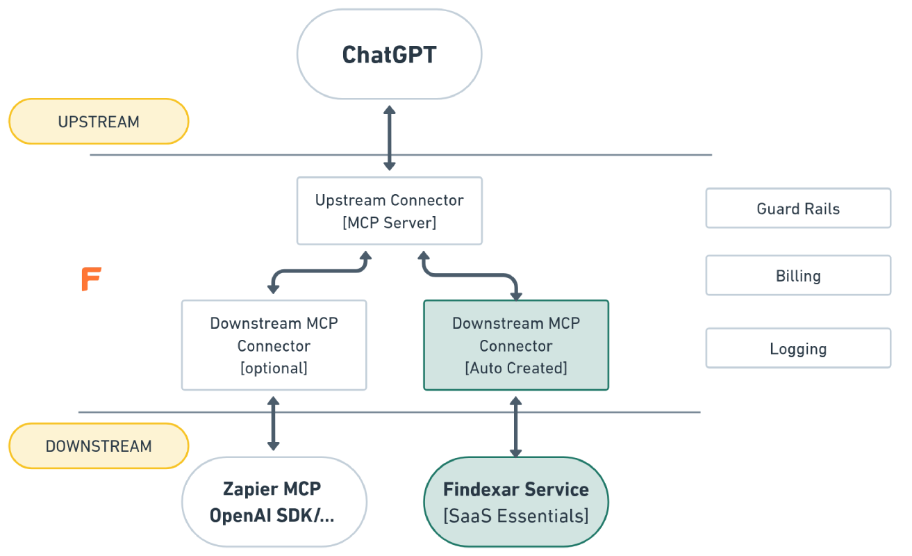 Findexar is designed to make it easy for anyone to launch SaaS applications with an optional user access from ChatGPT and other AI clients. Just like the big guys do. It provides